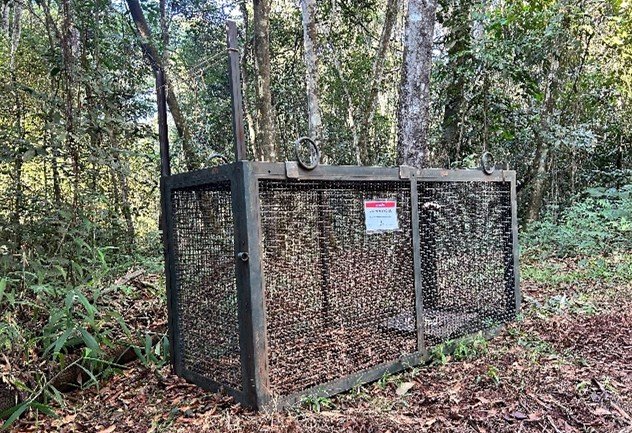 Contudo, quando o objetivo é obter informações mais detalhadas, especialmente sobre movimentação e padrões comportamentais, a captura de indivíduos é necessária. Nesse contexto, duas técnicas se destacam: as armadilhas de grade e as armadilhas do tipo laço. As armadilhas de grade são estruturas metálicas, robustas e seguras, instaladas em locais estratégicos e acionadas por mecanismos de disparo automático.